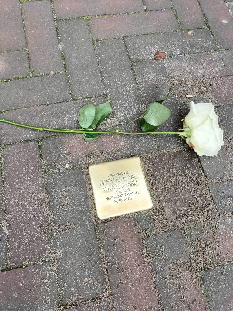 Vandaag is een struikelsteen geplaatst voor Raphael Isaac Wrazlowskij op de stoep voor Maliesingel 58. Hij woonde jarenlang op Maliesingel 58, en was zeefmaker van beroep (het waren zeven van paardenhaar voor bakkers). Hij dook onder maar werd toch opgepakt en in Auschwitz vermoord.